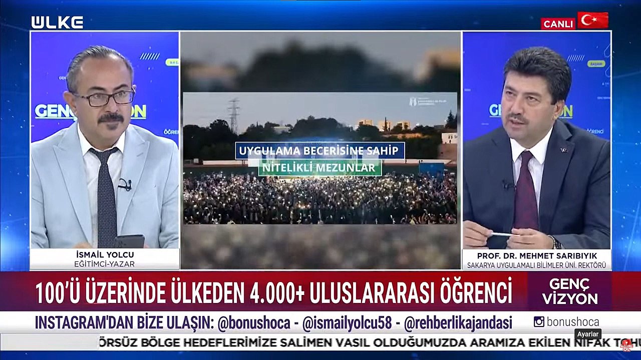 Sakarya Uygulamalı Bilimler Üniversitesi (SUBÜ) Rektörü Prof. Dr. Mehmet Sarıbıyık, Ülke TV ekranlarından canlı yayınlanan ‘Genç Vizyon’ programına konuk olarak İsmail Yolcu’nun sorularını cevaplandırdı. Sarıbıyık SUBÜ hakkında üniversite adaylarını ilgilendiren bilgiler verirken; programda +1 Eğitim Modeli, Ar-Ge ve girişimcilik destekleri, uygulama becerisinin sağladığı kazanımlar, uluslararası öğrenci çalışmaları ve üniversitenin şehre ve bölgeye katkıları konuşuldu. Tercih döneminde olan öğrencilere de tavsiyelerde bulunan Sarıbıyık, adayların sevmeyecekleri ve okurken zevk almayacakları bölümü yazmamalarını ve severek okuyacakları ve çalışacakları bir alan seçmelerinin kıymetli olacağını vurguladı.Çözüm odaklıyızÜniversitenin kuruluş amacını ve vizyonunu anlatan SUBÜ Rektörü Prof. Dr. Mehmet Sarıbıyık, “En büyük hedefimiz; uygulama becerisine sahip nitelikli bireyler yetiştirmek ve uygulanabilir Ar-Ge ile iş dünyasının sorunlarına çözüm üretmek. Öğrencilerimizin kendi alanlarında ayrıcalıklı beceriler kazanmaları için imkânlar sunuyor, yapılanmamızı bu hedeflere göre şekillendiriyoruz. Sakarya; tarım, sanayi, turizm ve spor alanlarında güçlü bir şehir. Biz de Turizm, Teknoloji, Spor Bilimleri ve Ziraat Fakültelerimizle şehrin ihtiyaçlarına yönelik nitelikli insan kaynağı yetiştirmeye devam ediyoruz” dedi.İş dünyasının ihtiyaçlarını önceliyoruzAkademik birimlerin şehirle entegre şekilde konumlandığını belirten Rektör Sarıbıyık, “Teknoloji Fakültemizdeki tüm mühendislik programlarımız, Mühendislik Eğitim Programları Değerlendirme ve Akreditasyon Derneği (MÜDEK) akreditasyonuna sahip. Sapanca’daki Turizm Fakültemiz özellikle gastronomi alanında öne çıkıyor. Arifiye’deki Ziraat Fakültemiz; tarla ve bahçe bitkilerinden peyzaj mimarlığına kadar geniş bir yelpazede eğitim veriyor. Akyazı’da Sağlık Bilimleri Fakültemiz, merkezde ise Uygulamalı Bilimler Fakültemiz bulunuyor. Denizcilik Meslek Yüksekokulumuz akredite ve aynı zamanda modern bir altyapıya sahip. Bilişim Teknolojileri MYO’muzda yapay zekâ ve veri bilimi gibi programlar yer alıyor. Hendek’te ise mevcut okulumuzu organize sanayi bölgesi içine taşıyor, dijital dönüşüm odaklı programlarımızla iş dünyasının gelecekteki ihtiyaçlarına cevap verecek nitelikte bir okul oluşturuyoruz” ifadelerini kullandı.Ödüllü üniversiteÜniversitenin kısa sürede birçok önemli başarıya imza attığını vurgulayan Sarıbıyık, “Yükseköğretim Kurulu (YÖK) Üstün Başarı Ödülü’nü, Türkiye Kalite Derneği’nden (KalDer) İlham Veren Kamu Yönetimi Başarı Ödüllerini ve Sürdürülebilir Eğitim Gelişim ve Mükemmellik Derneği’nden (SEGM) Sürdürülebilir Eğitim Gelişim Ödülü’nü aldık. 2025’te Yükseköğretim Kalite Kurulu (YÖKAK) tarafından 5 yıllık tam akreditasyon ile akredite edildik. Tüm programlarımızın ulusal ve uluslararası geçerliliğe sahip olması için yoğun şekilde çalışıyoruz. Öğrencilerimizi bir dönem tam zamanlı olarak iş yerlerine gönderiyoruz. Böylece mezun olmadan iş dünyasını tanıyor, deneyim kazanıyor ve iş teklifi alıyorlar. 7-8 bin kayıtlı firmamızdan gelen talepler doğrultusunda sistemli yerleştirmeler yapıyor, öğrencilere hem akademik hem de saha danışmanlığı sağlıyoruz” diye konuştu.Kültürel köprülerSUBÜ’de 100’ün üzerinde ülkeden 4 bine yakın uluslararası öğrenci bulunduğunu ifade eden Sarıbıyık, “Uluslararası öğrencilerimizi kültür ve ticaret elçileri olarak görüyoruz. Önce Türkçe öğreniyor, ardından iş dünyasında deneyim kazanıyorlar. Sınıflarımız adeta birer uluslararası okul gibi; bu da öğrencilerimiz için değerli bir kültürel ve profesyonel ağ oluşturuyor. Ayrıca Erasmus Programı ile her yıl çok sayıda öğrencimizi yurt dışına staj ve eğitim için gönderiyoruz” dedi.Teknoloji yarışmaları ve Ar-Ge çalışmalarıSUBÜ Teknoloji Yarışmaları Koordinatörlüğü’nün Türkiye’de örnek bir model olduğunu söyleyen Sarıbıyık, “Takımlarımızla Teknofest’e katılıyor ve birçok ödül kazanıyoruz. Elektrikli, hidrojen ve otonom araçlarımız çok iyi dereceler elde ediyor. Kanser tedavisinde kullanılan cihaz üretiminden tarımsal verimliliği artıran projelere kadar geniş alanda Ar-Ge çalışmaları yürütüyoruz. Öğrencilerimizi proje geliştirmeye, sahadaki problemlere çözüm bulmaya teşvik ediyoruz. İş dünyasının ihtiyaç duyduğu nitelikli insan kaynağını sağlamakta anahtar konumdayız. Yöresel üretimden dijital dönüşüme kadar birçok alandaki projelerle şehrin ve bölgenin kalkınmasına katkı sağlıyoruz” ifadelerini kullandı.