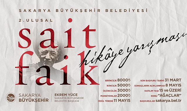 Sakarya Büyükşehir Belediyesi ve Sakarya İl Kültür Turizm Müdürlüğü işbirliğiyle düzenlenen 2. Ulusal Sait Faik Hikâye Yarışması’nda başvurular tamamlandı. Toplamda 556 geçerli başvurunun yapıldığı yarışmanın sonuçları jüri tarafından değerlendirilecek. 1906 yılında Adapazarı’nda dünyaya gelen, öykücülüğü ile Türk Edebiyatında önemli bir yer edinmiş olan Sait Faik Abasıyanık’ın anısını yaşatmak, hikâye alanında yapılan çalışmaları desteklemek ve Sait Faik’i genç kuşaklara tanıtmak amacıyla gerçekleştirilen yarışmanın konusu ise “Ağaçlar” oldu. Şairin de şiir ve romanlarında sıklıkla kullandığı temalardan birisi olan ağaçlar hikayeleri yarışmanın ödüllerini belirleyecek.