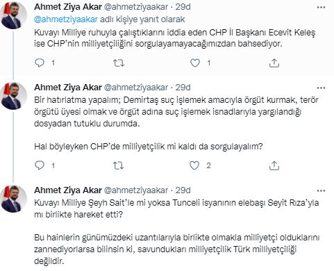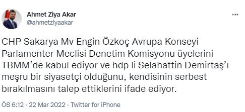 Sapanca Mesleki ve Teknik Anadolu Lisesinde bahar döneminde de Tiyatro Faaliyetleri devam edecek. Ahmet Ziya Akar: Savundukları Milliyetçilik Türk Milliyetçiliği Değildir Milliyetçi Hareket Partisi (MHP) Sakarya İl Başkanı Ahmet Ziya Akar, sosyal medya üzerinden tepkisini kamuoyu ile paylaştı. Milliyetçi Hareket Partisi (MHP) Sakarya İl Başkanı Ahmet Ziya Akar, yaptığı sosyal medya paylaşımı ile tepkisini şu şekilde gösterdi; Ahmet Ziya Akar, “CHP Sakarya Mv. Engin Özkoç Avrupa Konseyi Parlamenter Meclisi Denetim Komisyonu üyelerini TBMM’de kabul ediyor ve HDP’li Selahattin Demirtaş’ı meşru bir siyasetçi olduğunu, kendisinin serbest bırakılmasını talep ettiklerini ifade ediyor.Kuvayı Milliye ruhuyla çalıştıklarını iddia eden CHP İl Başkanı Ecevit Keleş ise CHP’nin milliyetçiliğini sorgulayamayacağımızdan bahsediyor.Bir hatırlatma yapalım; Demirtaş suç işlemek amacıyla örgüt kurmak, terör örgütü üyesi olmak ve örgüt adına suç işlemek isnatlarıyla yargılandığı dosyadan tutuklu durumda.Hal böyleyken CHP’de milliyetçilik mi kaldı da sorgulayalım?Kuvayı Milliye Şeyh Sait’le mi yoksa Tunceli isyanının elebaşı Seyit Rıza’yla mı birlikte hareket etti?Bu hainlerin günümüzdeki uzantılarıyla birlikte olmakla milliyetçi olduklarını zannediyorlarsa bilinsin ki, savundukları milliyetçilik Türk milliyetçiliği değildir.” ifadelerine yer verdi.