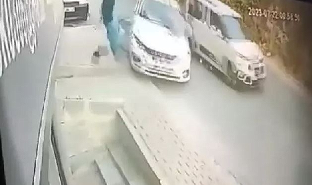 Kaza anı güvenlik kamerası tarafından da kaydedildi. Yokuş aşağı hızla gelen otomobil 4 kişiye çarpıp savurduktan sonra işyerine çarparak durabiliyor.