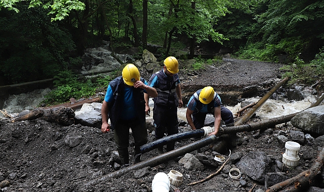 Marmara Bölgesini etkisi altına alan sağanak yağış sonrası Sakarya’nın bazı ilçelerinde taşkın ve su basmaları meydana geldi. Taşkın ve su basmalarına karşı nöbet tutan Büyükşehir Belediyesi SASKİ ekipleri Hendek’te hızla müdahaleye başladı. Hendek Çamlıca Mahallesi bölgesinde yer alan derenin taşması sonucu hasar alan içmesuyu hattında SASKİ ekipleri hızla onarım çalışmalarına başladı. Vatandaşların mağdur olmaması adına tüm ekipleriyle teyakkuz altında olan SASKİ, özverili şekilde çalışan ekipleri sayesinde bölgedeki su sıkıntısını en kısa sürede çözüme kavuşturmayı planlıyor.