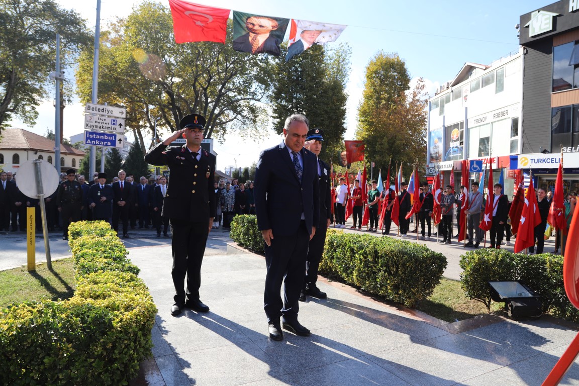 Hendek Kaymakamı Halil İbrahim Acır ve Hendek Belediye Başkanı Turgut Babaoğlu’nun anıta çelenk sunmasının ardından saygı duruşunda bulunuldu ve ardından İstiklal Marşı okundu. Cumhuriyetimizin 99.yılı münasebetiyle gerçekleşen çelenk sunum töreninin ardından protokol mensupları vatandaşlarla birlikte günün anısına fotoğraf çektirdi.