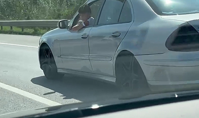 Sakarya D-100 karayolunda yabancı plakalı bir otomobilin yaptığı pes dedirtti. Seyir halindeyken kucağına 5-6 yaşlarında bir çocuğu alarak yoluna devam eden otomobil sürücüsü hem kendi canlarını hem de diğer sürücülerin canlarını hiçe saydı. O anlar anbean başka bir araçta bulunan vatandaşlar tarafından kaydedilirken, küçük çocuğun sürücü camından dışarı sarktığı görüldü.