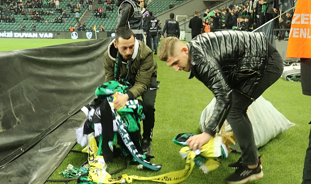 Kocaelispor, Sakaryaspor maçının 4 dakika 17. saniyesinde deprem bölgesindeki vatandaşlar unutulmadı. Sahaya atılan atkılar, deprem bölgesine gönderilmek için toplandı.