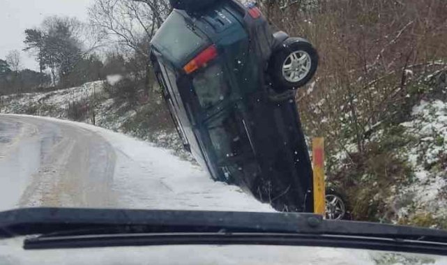 Kaza, Kandıra ilçesine bağlı Çukurbalcı Mahallesi'nde meydana geldi. Plakası ve sürücüsü öğrenilemeyen bir otomobil, sürücüsünün hakimiyetini kaybetmesiyle yol kenarına uçtu. Dik vaziyette kalan otomobili, yoldan geçen sürücüler şaşkınlıkla izledi.