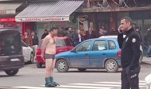 Konuya ilişkin inceleme başlatılırken kimsenin ne olduğunu anlayamadığı o anlar ise vatandaşlar tarafından cep telefonuyla kayda alındı. Görüntülerde, ismi öğrenilemeyen şahsın yarı çıplak şekilde cadde ortasında durması, elindeki bıçakla kendine zarar vermeye çalışması ve küfretmesi yer alıyor.
