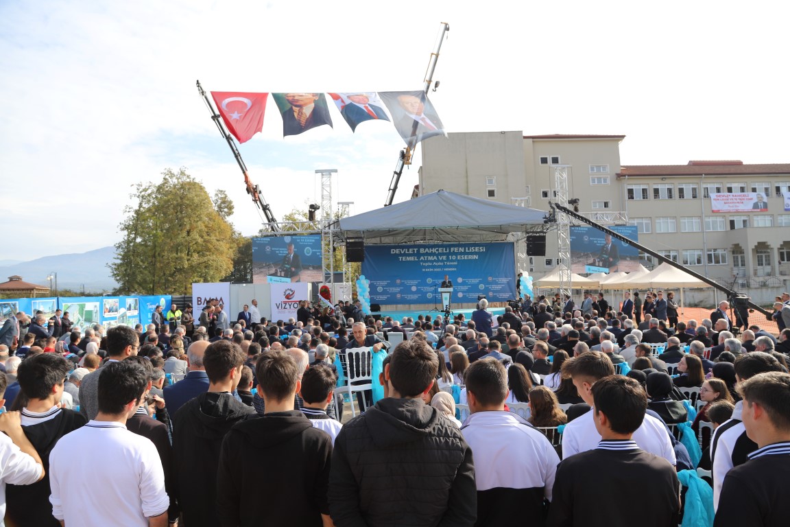 Konuşmaların ardından Devlet Bahçeli Fen Lisesi’nin temeli atıldı ve ardından 10 eser hizmete alındı. Program sonunda ise Konya’da yapılan Ümit genç ve U21 Dünya Karate Şampiyonasında Dünya Şampiyonu olan Hendek Belediyesi Karate Takımı sporcusu Yusuf Eren Temizel sahneye davet edildi ve ödüller takdim edildi.