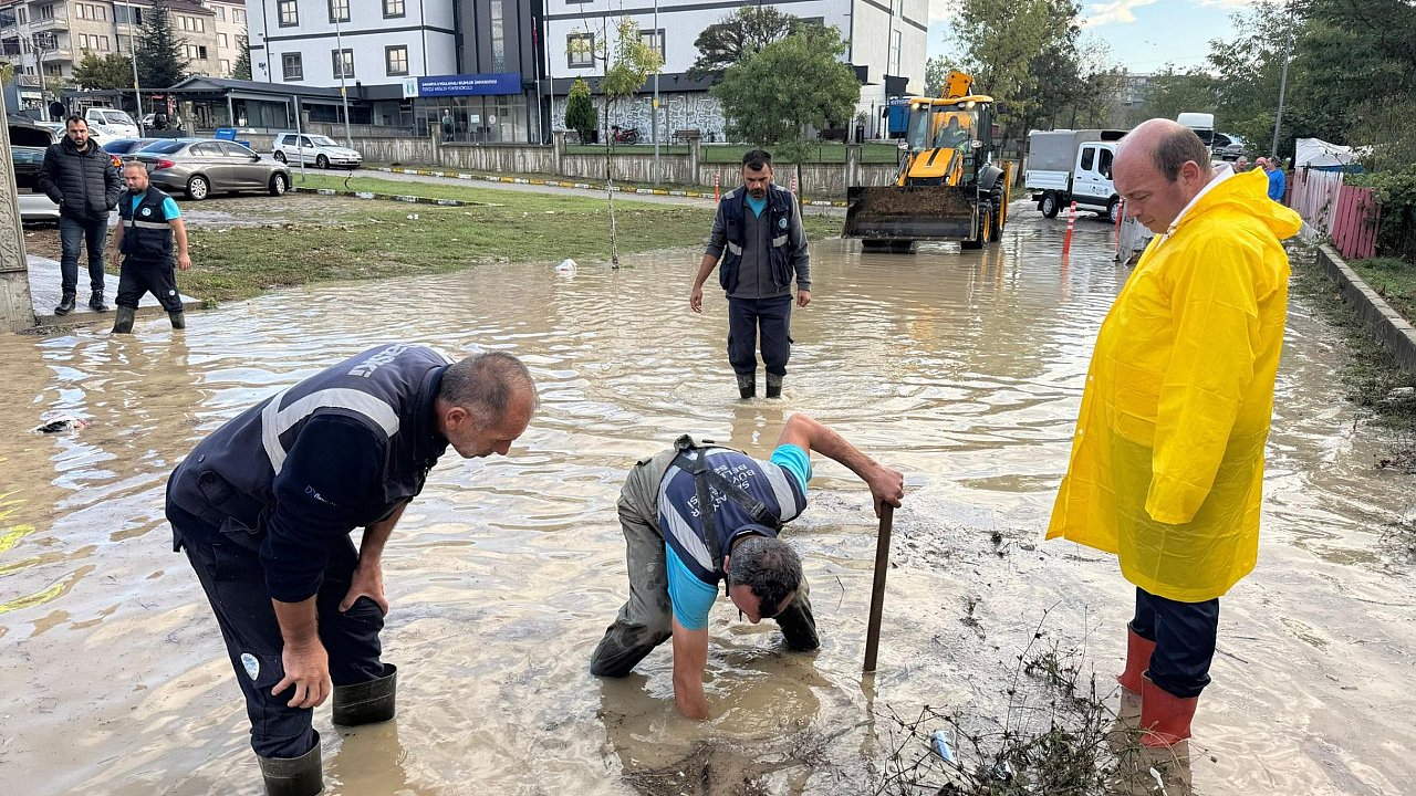Ferizli'de Yoğun Yağışa Anında Müdahale: Taşkınlar Kısa Sürede Kontrol Altına Alındı