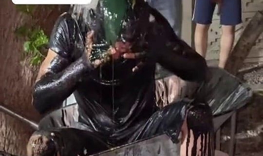 Sakarya’nın Akyazı ilçesinde düğün sonrası damadın üstüne un ve yağ dökme eğlencesi bu kez farklı bir boyuta taşındı. Bir kişi, 5 litrelik bidon içinde getirdiği motor yağını dökerek damadı adeta siyaha boyadı.