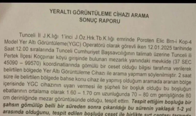 Gülistan Doku, 5 Ocak 2020’de kaldığı yurttan ayrıldıktan sonra kaybolmuş, aynı gün Tunceli Valiliği yakınlarında eski erkek arkadaşı Zeinal Abakarov ile görüldüğü güvenlik kameralarına yansımıştı.Genç öğrencinin şehir içi minibüse bindiği belirlenmiş ancak nerede indiği tespit edilememişti.Telefon sinyalinin ise Uzunçayır Baraj Gölü–Sarı Saltuk Viyadüğü çevresinden son kez alındığı kaydedilmişti.700 SAATLİK KAMERA KAYDI İNCELENDİDosyanın yeniden açılmasıyla birlikte özel ekip kurulurken, 700 saatlik MOBESE görüntüsü, HTS kayıtları ve baz istasyonu analizleri yeniden değerlendirildi. Yapılan çalışmalar sonucunda dosya “kayıp” statüsünden çıkarılarak “cinayet ve olası organize örtbas” şüphesiyle genişletildi.7 İLDE EŞ ZAMANLI OPERASYONTunceli Cumhuriyet Başsavcılığı koordinesinde Tunceli merkezli olmak üzere İstanbul, Ankara, Antalya, Bursa, Elazığ ve İzmir’de eş zamanlı operasyonlar düzenlendi. Operasyonlarda 13 şüpheli hakkında gözaltı kararı verildi.Şüphelilerin cinayet, delil karartma, örtbas ve kamu görevinin kötüye kullanılması suçlamalarıyla sorgulandığı bildirildi. Gözaltına alınanlar arasında dönemin Tunceli Valisi Tuncay Sonel’in oğlu Mustafa Türkay Sonel de yer aldı.DOSYANIN KADERİNİ DEĞİŞTİREN RAPORTunceli İl Jandarma Komutanlığı bünyesinde görevli bir Yeraltı Görüntüleme Cihazı (YGC) operatörü tarafından hazırlanan "Yeraltı Görüntüleme Cihazı Arama Sonuç Raporu" ortaya çıktı.Raporda ihbar üzerine yapılan inceleme neticesinde, ihbar edilen noktada bir mezar tespiti yapıldığı, bu mezarda bulunan kişinin bedeninin gömüldükten 1-2 yıl sonra çıkarıldığı kayda geçti.Buna göre operatörün yaptığı çalışma sonucunda hazırladığı rapordaki çarpıcı ifadeler şöyle kayda geçti:12.01.2025 tarihinde saat 12.00 sıralarında Tunceli Cumhuriyet Başsavcılığının talimatı üzerine Tunceli ili Pertek İlçesi Koçpınar köyü girişinde bulunan mezarlık yanındaki mevkiide gömülü bir ceset olduğu bilgisi tarafıma verilerek belirtilen bölgede Yer Altı Görüntüleme Cihazı ile arama yapmam söylenilmiştir. 2 saat süre ile belirtilen bölgede bahse konu cihaz ile yapmış olduğum aramada aranan bölge içerisinde YGC cihazının uyarı vermesi ile şüpheli bir boşluk olduğu bu boşluğun ebatlarının ortalama olarak 1.60 - 1.70 cm uzunluğunda 70 - 80 cm genişliğinde 80 cm derinliğinde mezar görüntüsünde olduğu, tespit ettim. Tespit ettiğim boşluğa bir şahsın gömülüp belli bir süreden sonra çıkarıldığı bu sürenin yaklaşık 1-2 yıl arasında olduğunu, tespit edilen boşluğa ceset ile birlikte sırt çantası tarzında...