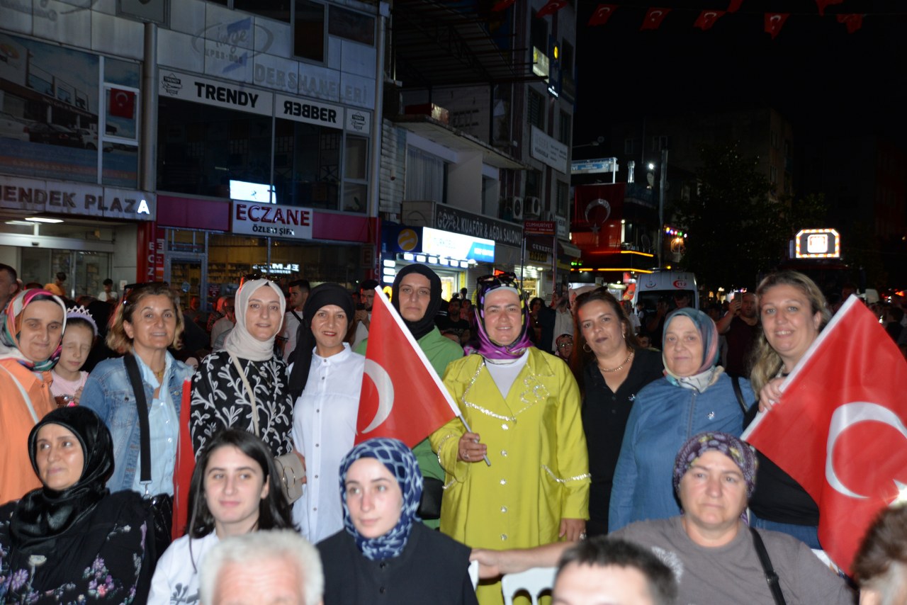 Hendek Kaymakamlığı öncülüğünde düzenlenen etkinliklere Hendek Kaymakamı Halil İbrahim Acır, Hendek Belediye Başkanı Turgut Babaoğlu, Hendek Cumhuriyet Başsavcısı Ayhan Yenilmez, İlçe Jandarma Komutan V. Teğmen Sertaç Kaya, MHP Hendek İlçe Başkanı Burhan Namlı, yönetim kurulu üyeleri ve KAÇEP Komisyonu, AK Parti Hendek İlçe Başkanı Hasan Serdar Baykal, yönetim kurulu üyeleri ve Kadın/Gençlik Kolları kademeleri, Ülkü Ocakları Hendek İlçe Başkanı Sıtkı Yaz, Hendek Muharip Gaziler Dernek Başkanı Ferhat Albayrakoğlu, Belediye Başkan Yardımcıları Hüdaverdi Bahadır ve Hızır Çağrı Güngör, Hendekspor Başkanı Murat Kaya, Belediye Meclis üyeleri, Belediye Daire Müdürleri ve çalışanları, Bürokratlar, Tüm Hendek Muhtarlar Derneği Başkanı Kadir Yağlı ve mahalle muhtarları, sivil toplum kuruluşlarının temsilcileri, dernekler, sporcular, Hendek Kızılayı ve çok sayıda Hendekli katıldı. O kara geceyi anlatan video gösterimlerinin yapıldığı meydanda Hendek Belediyesi tarafından vatandaşlara çay, su, meyve suyu, kek ve çorba ikramları yapılırken, binlerce Türk Bayrağı dağıtıldı.