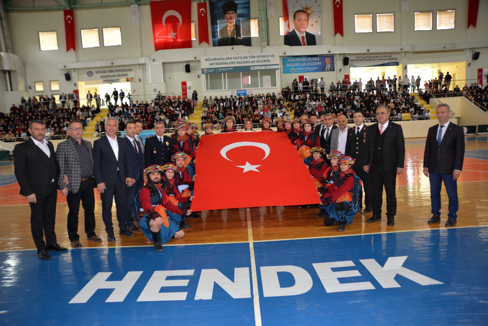 Cumhuriyet Meydanındaki çelenk sunma töreni sonrası İlçe protokolü ve vatandaşlar Hendek Yeni Spor Salonunda düzenlenen etkinliklere katıldı. Saygı duruşu ve İstiklal Marşı ile başlayan etkinlikte Hendek Kaymakamı Halil İbrahim Acır ve Hendek Belediye Başkanı Turgut Babaoğlu halkı selamladı. Hendek İlçe Spor Müdürü tarafından günün anlam ve önemini belirten konuşma yapıldı. Konuşmaların ardından öğrenciler tarafından şiirler okunarak Halk Eğitim merkezi folklor ekibi, Şehit Mahmutbey Ortaokulu Folklor ekipleri tarafından halk oyunları gösterileri sergilendi. Hendek Spor Kulüpleri Jimnastik ve Karate sporcuları ile Hendek Taekwondo Kulübü sporcuları tarafından jimnastik ve Karate gösterileri yapıldı. Gösteriler sonrası etkinlikleri kapsamında İlçede yapılan yarışmalar sonucunda dereceye giren öğrencilere İlçe Protokolü tarafından hediyelerinin takdim edilmesiyle birlikte tören sona erdi.