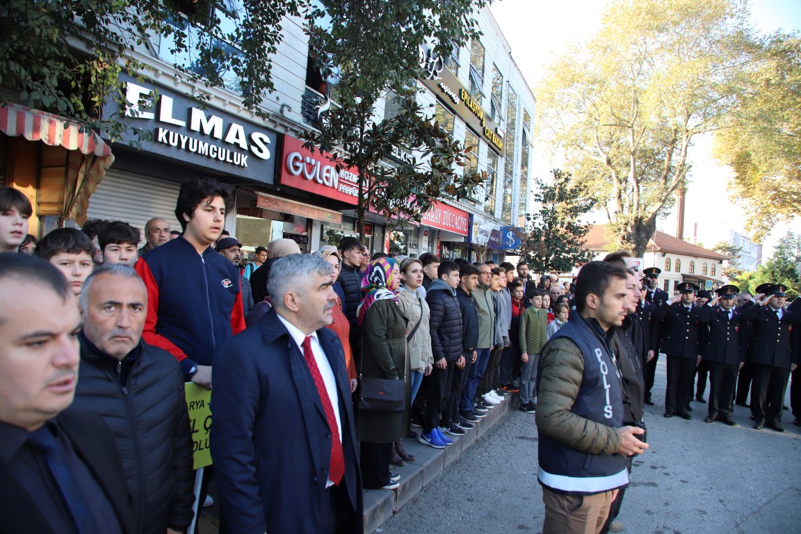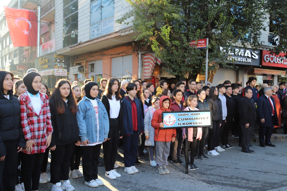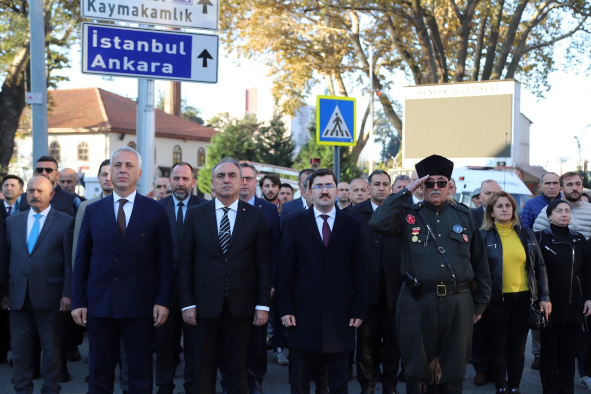 Cumhuriyet Meydanında bulunan Atatürk anıtına çelenklerin sunulması ile başlayan tören, Atatürk’ün hayata gözlerini yumduğu saat olan 09.05’te törene katılan İlçe protokolü, esnaflar ve vatandaşlar tarafından saygı duruşunda bulunulması ile devam etti. Hendek’te tam o anda hayat adeta durdu. Saygı duruşunun ardından İstiklal Marşı okunarak tören sona erdi.