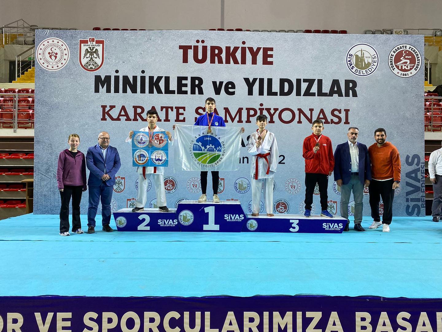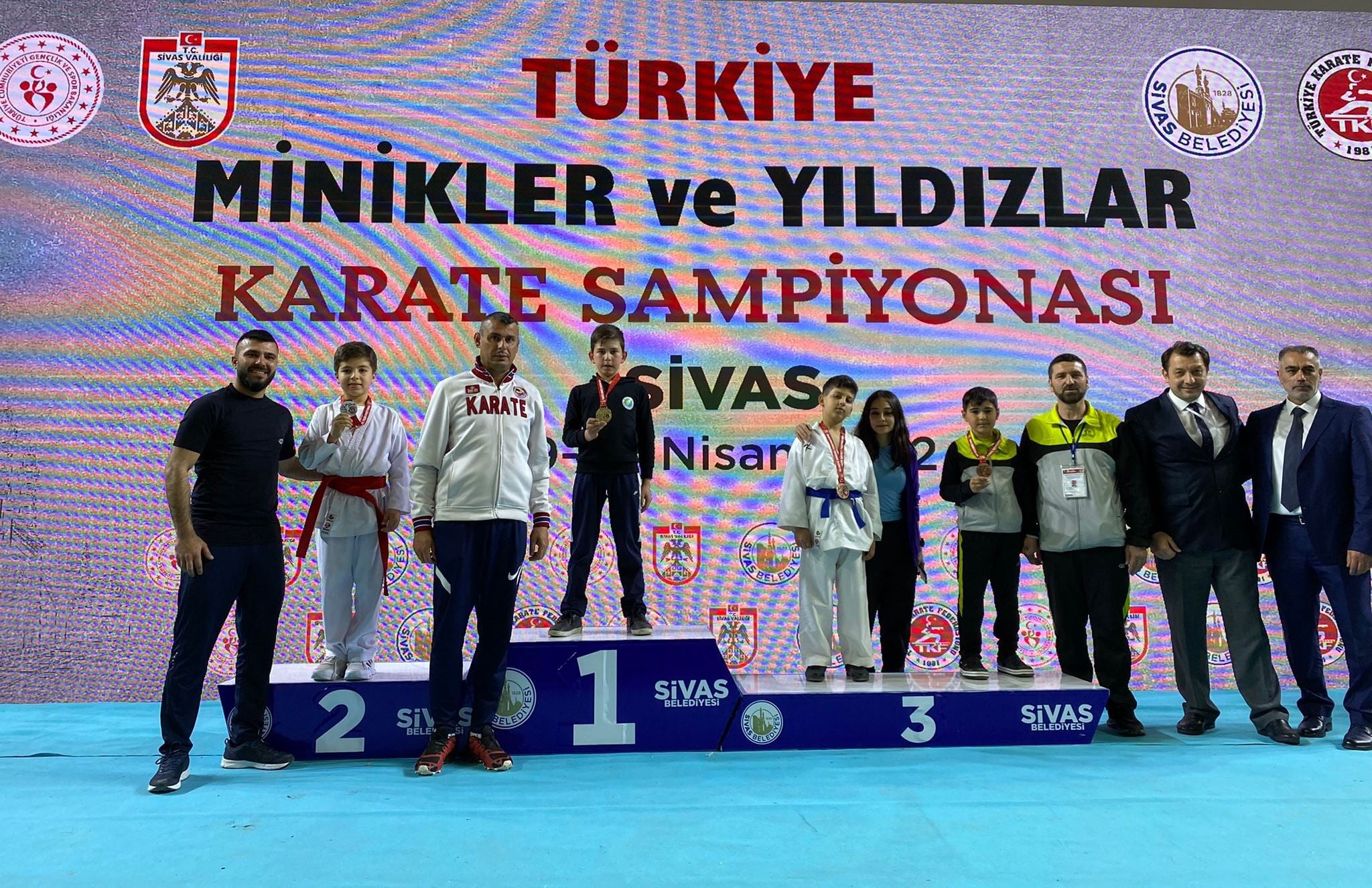Hendek Belediyesi Karate takımı 19-24 Nisan tarihlerinde Sivas’ta yapılan Türkiye Minikler ve Yıldızlar Karate Şampiyonasına katıldı. Sivas 4 Eylül Taha Akgül Spor Salonunda yapılan şampiyonada Teknik Direktör Nurkan Kayacık, Antrenörler Ümit Atış ve Volkan Karagöz’ün öğrencileri başarılarıyla Hendek’in bir kez daha gururu oldular. 40 sporcusu ile madalya avına çıkan karate takımı dev şampiyonada 3 altın 4 bronz olmak üzere 7 madalya kazandı. 2012 doğumlu Ahmet Uzunoğlu (40Kg.), 2011 doğumlu Egemen Varlıca (50Kg.) ve 2010 doğumlu Umut Kaan Kaynak (42Kg.) Erkekler Kategorisinde Türkiye Şampiyonu olarak altın madalya kazandılar. Bayanlarda 2011 doğumlu Emine Ebrar Temizel (+44Kg.) ve 2008 doğumlu Ceren Bitik (54Kg.), erkeklerde ise 2010 doğumlu Kayra Bahadıroğlu (+54Kg.) ve 2008 doğumlu Efe Dere (63Kg.) Türkiye 3’ncü olarak bronz madalyanın sahibi oldular. Teknik Direktör Nurkan Kayacık, “ Sivas’ta başarıyla dolu bir turnuvayı daha geride bıraktık. Kendilerini ve ailelerini şimdiden kutluyor, emek veren herkese ve her zaman yanımızda olan Başkanımız Sayın Turgut Babaoğlu’na çok teşekkür ediyorum” dedi.