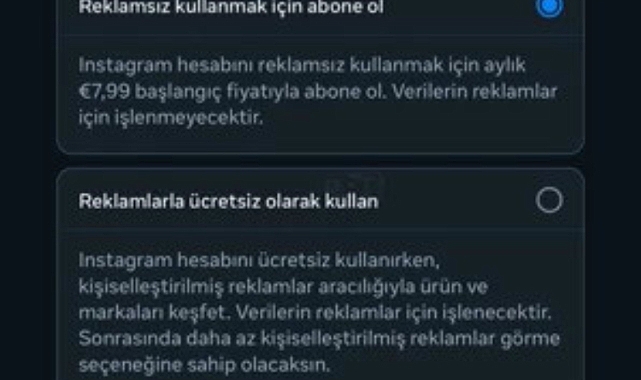 Instagram, kullanıcılarına reklamsız deneyim sunmak için aylık 7,99 Euro (yaklaşık 384 TL) ücretli abonelik modelini duyurdu.