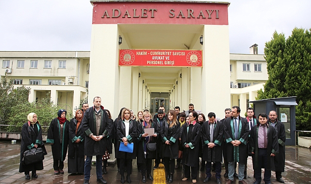 Sakarya Barosu Kamu Avukatları Komisyonu tarafından Sakarya Adliyesi’nde basın açıklaması düzenlendi. Açıklamaya, Baro Başkanı Av. İlknur Ebiz Yıldız, Başkan Yardımcısı Av. Gülşah Baş Duran, Genel Sekreter Av. Talha Toçoğlu ve çok sayıda avukat katıldı.