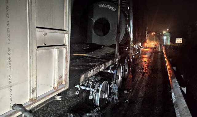 Olay, Anadolu Otoyolu hendek geçişi Hacimbey Mahallesi mevkii Düzce istikametinde meydana geldi. Edinilen bilgiye göre, Ö.P. idaresindeki 16 ALG 571 plakalı tırın dorse lastiğinin patlaması neticesinde yangın çıktı. Durumun haber verilmesi üzerine bölgeye itfaiye ve jandarma ekipleri sevk edildi. Olay yerine gelen itfaiye ekipleri yangını kontrol altına alarak söndürdü.