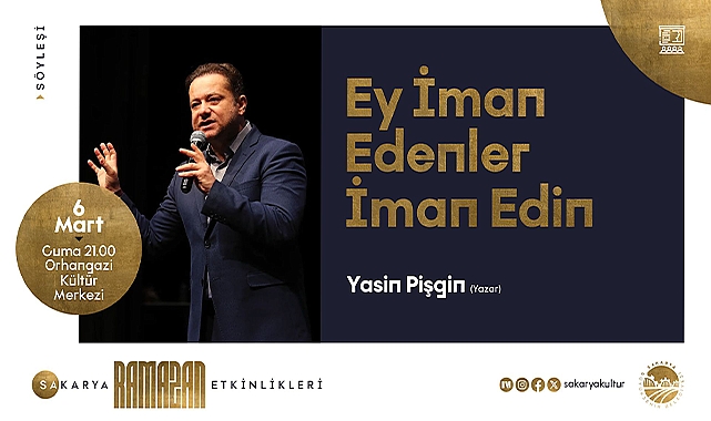 Büyükşehir Ramazan Kültür Sanat Takvimi, 6 Mart Cuma Günü Yasin Pişgin’in konuk olacağı “Ey İman Edenler İman Edin” adlı söyleşi ile devam edecek. Orhangazi Kültür Merkezi’nde gerçekleşecek program saat 21.00’da başlayacak.