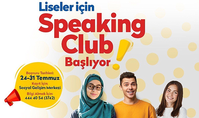 Her hafta grammer içermeyen bir konu üzerinde gerçekleştirilecek konuşma pratiğinde sınıf içi öğrencilerin seviyelerine göre eşleştirilmeler yapılacak. Eğitim amaçlı İngilizce sohbet edilen konuşma kulüpleri liseli gençlerin var olan yabancı dili özgüvenli, doğru ve akıcı bir şekilde konuşmaya yardımcı olacak. Kayıtların Sosyal Gelişim Merkezi’nde bizzat gelerek gerçekleştirileceği ‘Speaking Club’ için ayrıntılı bilgilere 444 40 54 (3742) hattından ulaşılabilecek.