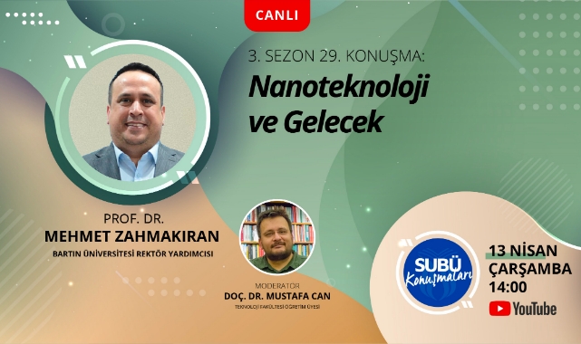 Sakarya Uygulamalı Bilimler Üniversitesi (SUBÜ) tarafından düzenlenen SUBÜ Konuşmaları’nın 29’uncu konuşmacısı ‘Nanoteknoloji ve Gelecek’ başlıklı söyleşiyle Bartın Üniversitesi Rektör Yardımcısı Prof. Dr. Mehmet Zahmakıran olacak. Moderatörlüğünü SUBÜ Teknoloji Fakültesi Öğretim Üyesi Doç. Dr. Mustafa Can’ın üstleneceği söyleşide; nanoteknolojinin temelleri, insan hayatını kolaylaştıran yönleri, bu tür teknolojileri geliştirmek için sahip olunması gereken yetkinlikler ve gelecekte insan hayatına muhtemel etkileri gibi konular ele alınacak. Söyleşi 13 Nisan Çarşamba günü saat 14.00’te üniversitenin YouTube kanalı SUBÜ Haber’den canlı yayınlanacak.