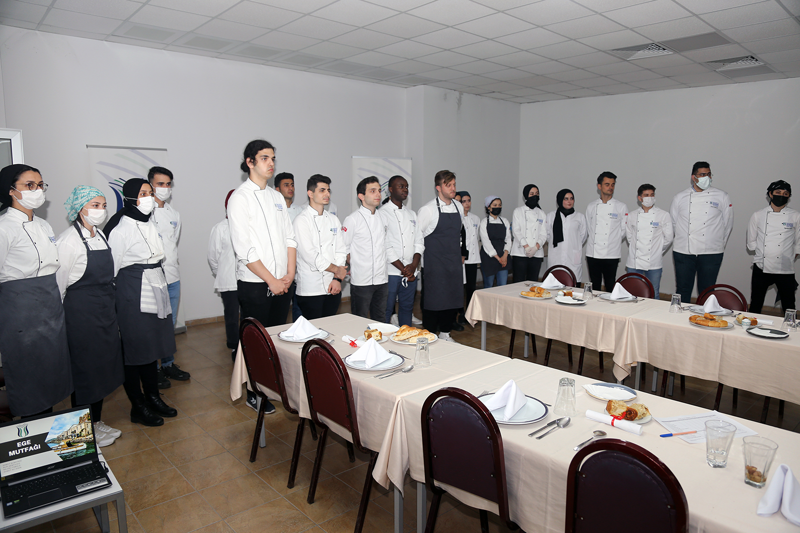Sakarya Uygulamalı Bilimler Üniversitesi (SUBÜ) Turizm Fakültesi Gastronomi ve Mutfak Sanatları Bölümü öğrencileri ‘Yöresel Mutfaklar’ dersinde öğrendikleri bilgileri SUBÜ Senato Üyeleri ve Turizm Eğitimi Değerlendirme ve Akreditasyon Kurulu (TURAK) temsilcilerinin katılımıyla hazırladıkları iftar yemeğiyle pekiştirdiler. Ege Bölgesi’ne yönelik lezzetlerden oluşan menü misafirler tarafından tadılarak puanlandı. İftarın ardından düzenlenen programda ise yapılan saha ziyaretleri neticesinde 1 Ocak 2022-31 Aralık 2024 tarihleri arasında TURAK tarafından akredite edilen Turizm Fakültesi Turizm İşletmeciliği Lisans Programı için Akreditasyon Belgesi SUBÜ Rektörü Prof. Dr. Mehmet Sarıbıyık’a takdim edildi. Program, Turizm Fakültesi Halk Oyunları Ekibinin Ege yöresine ait gösterisiyle sona erdi. İftar programına SUBÜ Rektörü Prof. Dr. Mehmet Sarıbıyık, Rektör Yardımcıları Prof. Dr. Sinan Serdar Özkan ve Prof. Dr. Ali Fuat Boz, Genel Sekreter Dr. Öğretim Üyesi Gökhan Ergen, TURAK Akreditasyon Değerlendiricisi ve Kocaeli Üniversitesi Turizm Fakültesi Dekanı Prof. Dr. Emrah Özkul, dekanlar ve meslek yüksekokulu müdürleri katıldı.