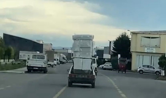 Serdivan ilçesinde bulunan ASEM Mobilyacılar Çarşısı içerisinde seyir halinde olan bir otomobilin üzerindeki ve bagajındaki yükler görenleri şaşırttı. Tehlikeye davetiye çıkaran yolculuk anları cep telefonu kamerasıyla saniye saniye kaydedildi.