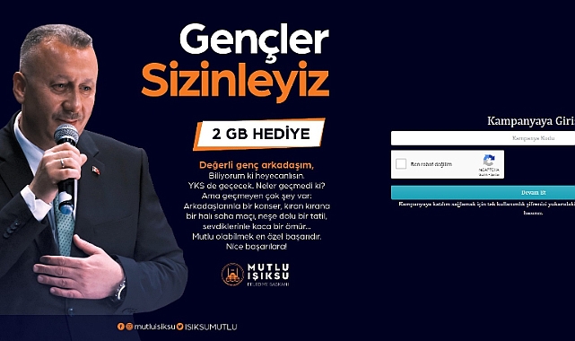 Başkan Işıksu gönderdiği mesajda, “Değerli genç arkadaşım, biliyorum ki heyecanlısın. YKS de geçecek. Neler geçmedi ki? Ama geçmeyen çok şey var: Arkadaşlarınla bir konser, kıran kırana bir halı saha maçı, neşe dolu bir tatil, sevdiklerinle koca bir ömür. Mutlu olabilmek en özel başarıdır. Nice başarılara. Sana özel birçok hizmetle her zaman yanında olmaya gayret ederken, bugün de 2 GB internet paketi hediye etmek isterim. https://hediyegb.adapazari.bel.tr/ adresinden sana özel tanımlanmış kod ile kolayca hattına yükleme yapabilirsin. En derin sevgilerimle.” ifadelerini kullandı.