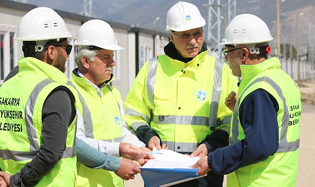 Başkan Ekrem Yüce ile Sakaryalı ekibi konteyner kentlerin kurulumdaki tüm teknik ayrıntıları inceliyor ve yaşam alanlarının depremzedelere en kısa sürede teslim edilmesi için hassasiyetle çalışıyor.